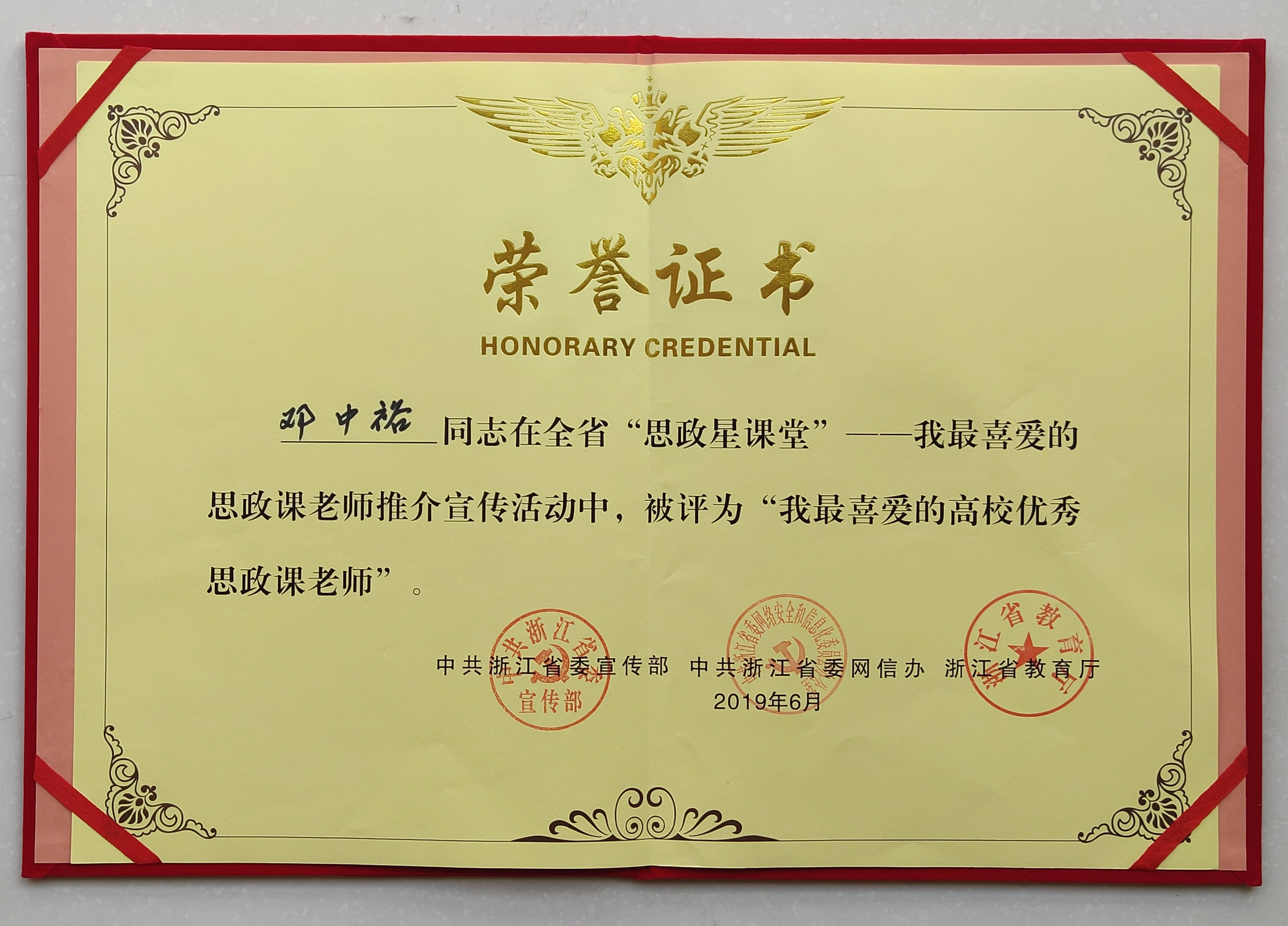 近日,由浙江省委宣传部、省委网信办、省教育厅联合策划推出的“思政星课堂”—— 我最喜爱的思政课老师推介宣传活动现场选拔在中国计量大学举行,全省20名高校思政课教师入围。通过专家评委、员工投票,公司邓中裕老师以题为《厚植爱国主义情怀》的思政课精彩展示,获得“我最喜爱的高校优秀思政课老师”的称号。邓中裕老师为BB贝博艾弗森思想道德修养与法律基础教研室主任,他的思政课堂总是生动风趣,深入浅出,理论与实际相结合,深受广大同学喜爱,被同学们亲切地称为“邓男神”。