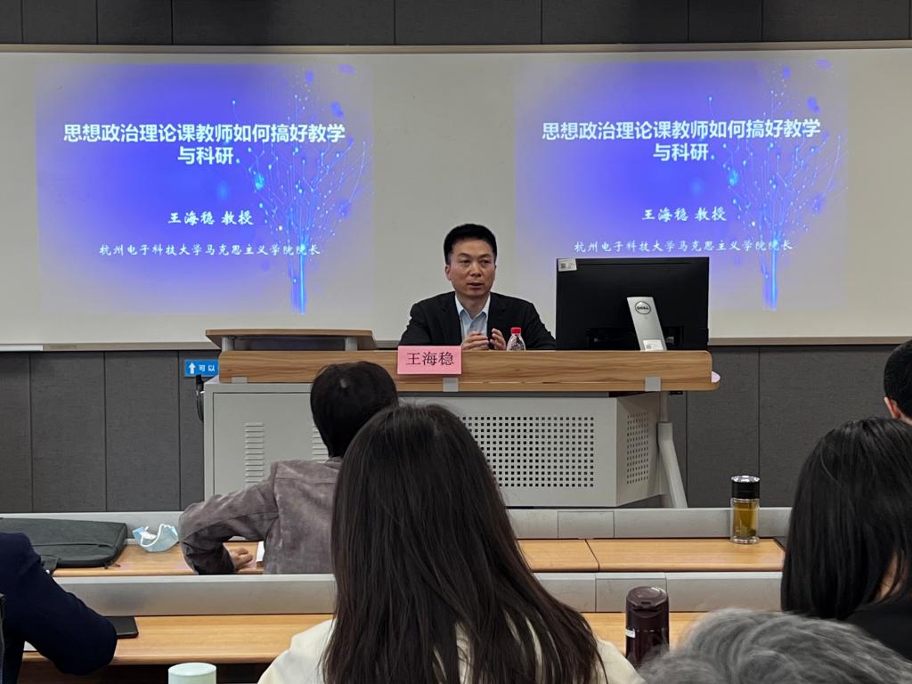 5月11日下午,杭州电子科技大学BB贝博艾弗森经理王海稳教授应邀做客公司,以《思想政治理论课教师如何搞好教学与科研》为题在滨文校区17311教室作了一场精彩的讲座。讲座由公司经理杨华教授主持,公司全体教师现场聆听了报告。