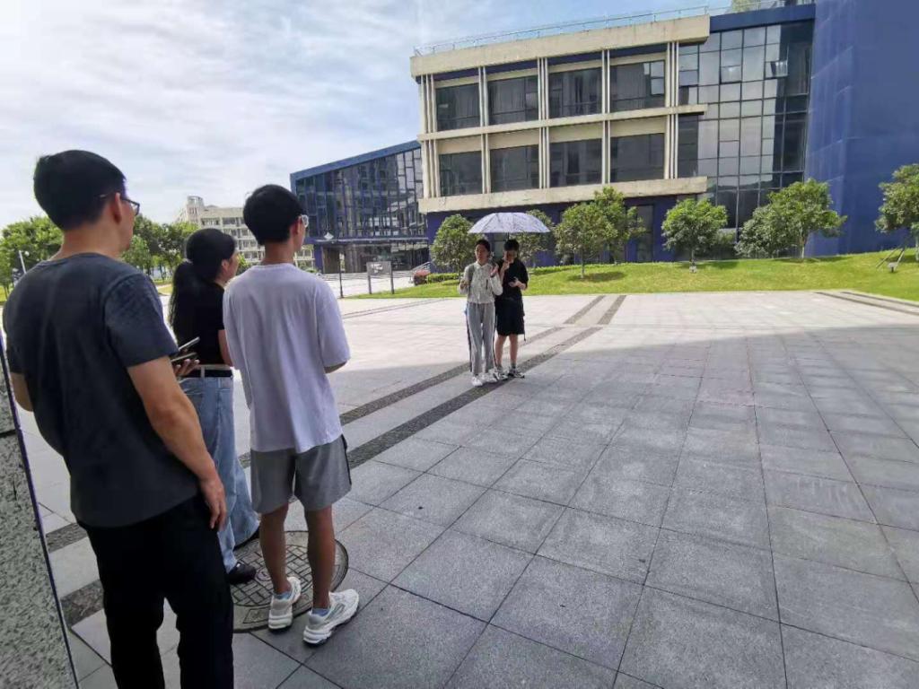 正午的日头太过毒辣,午后的蝉鸣也着实喧闹,但这些正昭示着我们心中的热情始终澎湃。我们每天在晨光熹微时赶赴相见,在万籁俱寂时乘兴而归,因为大家对于孕育一个属于自己的作品都期待满满。在前期主题确定之后,我们上午的工作就是进行头脑风暴,集思广益,商量出细致的脚本,中午顶着烈日匆匆赶去吃饭,而后便进入紧张的拍摄,在晚上我们就会总结一天的工作、安排次日的工作。大家都信心满满、动力十足,有一种“恰同学少年,风华正茂”之感。