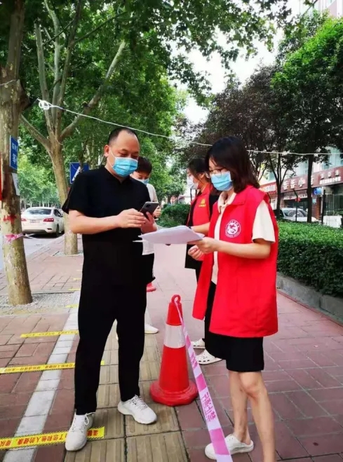 “您好!请您配合我们测量体温,并扫码登记”;“请您准备好身份证”;“我来帮您登记信息”;“请大家保持好距离、注意防护。”身着红马甲的张馨予同学“疫”无反顾,在炎炎烈日下,认真尽责地协助值守人员对来往行人、车辆逐一进行测量体温、查验健康码和行程码、身份证扫描、秩序维护等,并积极做好疫情防控政策措施和防护知识宣传,成为社区疫情防控一线的一名服务骨干。